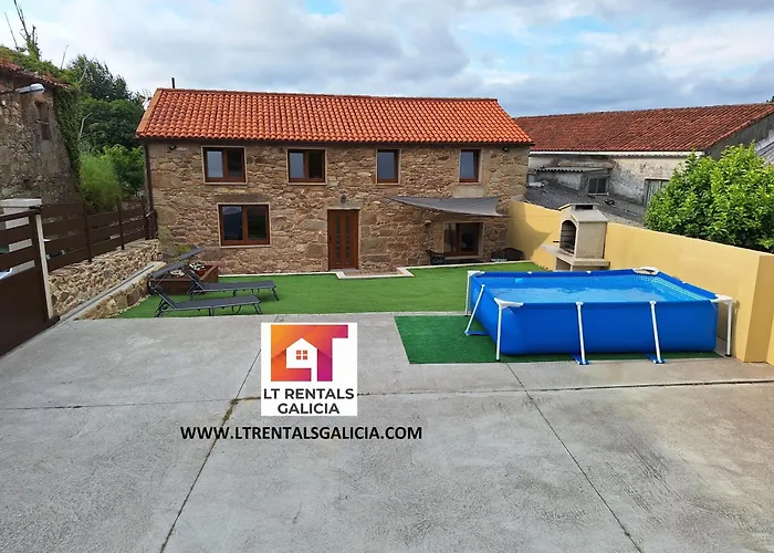 Willa Casa Campecha dysponuje tarasem z widokiem na górę, 45 min jazdy od lotniska Santiago de Compostela. Willa oferuje zewnętrzny basen, a także grę w rzutki dla aktywnych Gości.